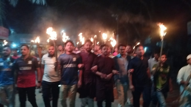 শুক্রবার (১৭ অক্টোবর) সন্ধ্যা সাড়ে ৭ টার দিকে বিশ্ববিদ্যালয়ের জিয়া মোড় থেকে একটি মশাল মিছিল বের হয়। ক্যাম্পাসের বিভিন্ন গুরুত্বপূর্ণ সড়ক প্রদক্ষিণ করে প্রধান ফটকের সামনে সংক্ষিপ্ত সমাবেশ করে তারা।