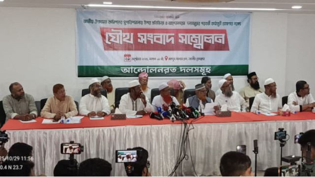 জাতীয় ঐকমত্য কমিশনের চূড়ান্ত সুপারিশমালার উপর প্রতিক্রিয়া ও অবিলম্বে জুলাই জাতীয় সনদ বাস্তবায়ন আদেশ জারি করে আগামী নভেম্বর মাসের মধ্যেই গণভোট আয়োজনসহ গণদাবিসমূহ আদায়ের লক্ষ্যে সংবাদ সম্মেলন করেছে বাংলাদেশ জামায়াতে ইসলামীর সঙ্গে থাকা আন্দোলনরত রাজনৈতিক দলসমূহ।